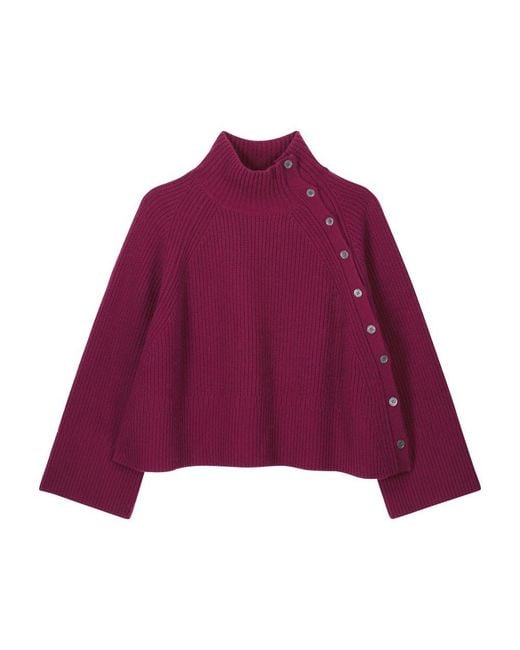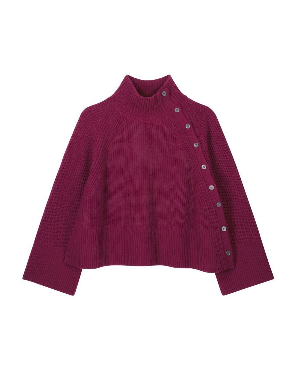Women's Purple Cashmere High Neck Sweater Buttoned