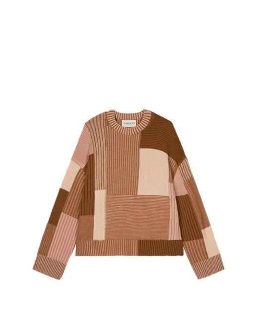 Women's Brown Pull Côtelé À Design Patchwork