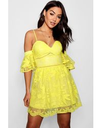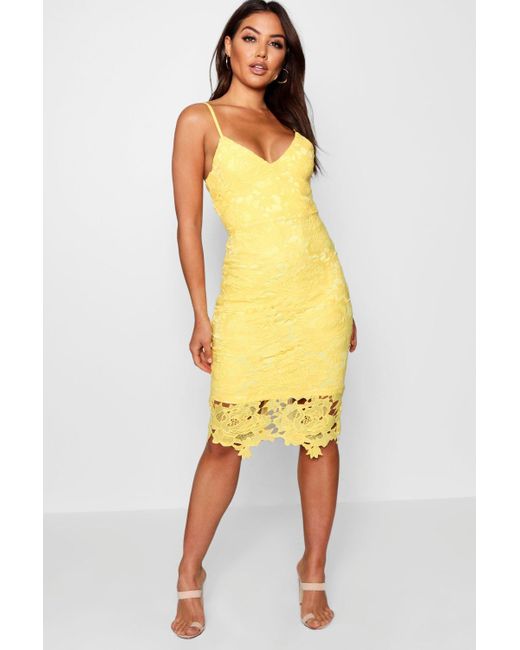 Womens Boutique Crochet Lace Strappy Midi Dress - yellow - 2 - Dresses are the most-wanted closet item for day-to-night dressing. From cool-tone whites to block brights, we've got the everyday skater dresses and party-ready bodycon styles that are perfect for transitioning from day to play. Minis, midis and maxis are our motto, with classic jersey always genius and printed cami dresses the season's killer cut - add skyscraper heels for a serioulsy statement look. Dress up or down in style with boohoo. Color: yellow