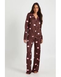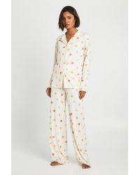 Boohoo Women's Natural Halloween Ditsy Pumpkin Print Long Sleeve Shirt & Pants Pajama Set
