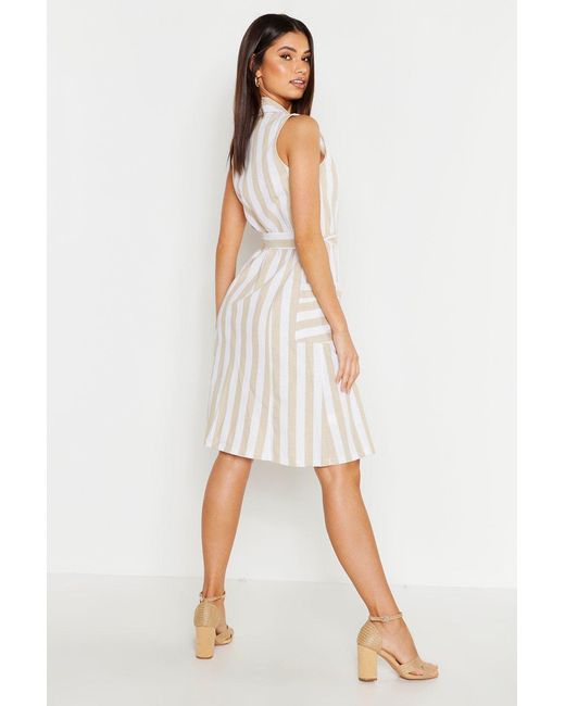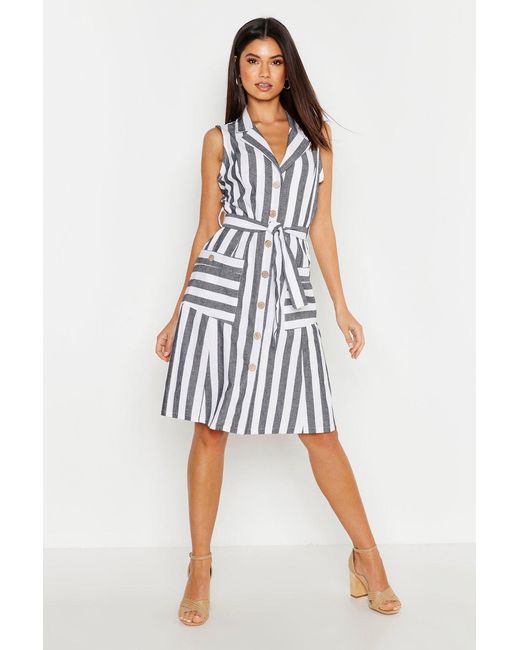 Womens Linen Stripe Pocket Button Through Midi Dress - blue - 6 - Dresses are the most-wanted closet item for day-to-night dressing. From cool-tone whites to block brights, we've got the everyday skater dresses and party-ready bodycon styles that are perfect for transitioning from day to play. Minis, midis and maxis are our motto, with classic jersey always genius and printed cami dresses the season's killer cut - add skyscraper heels for a serioulsy statement look. Dress up or down in style with boohoo. Color: blue