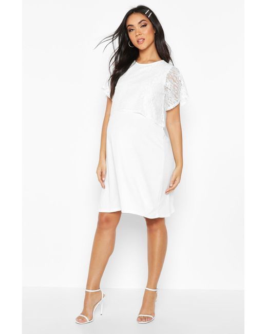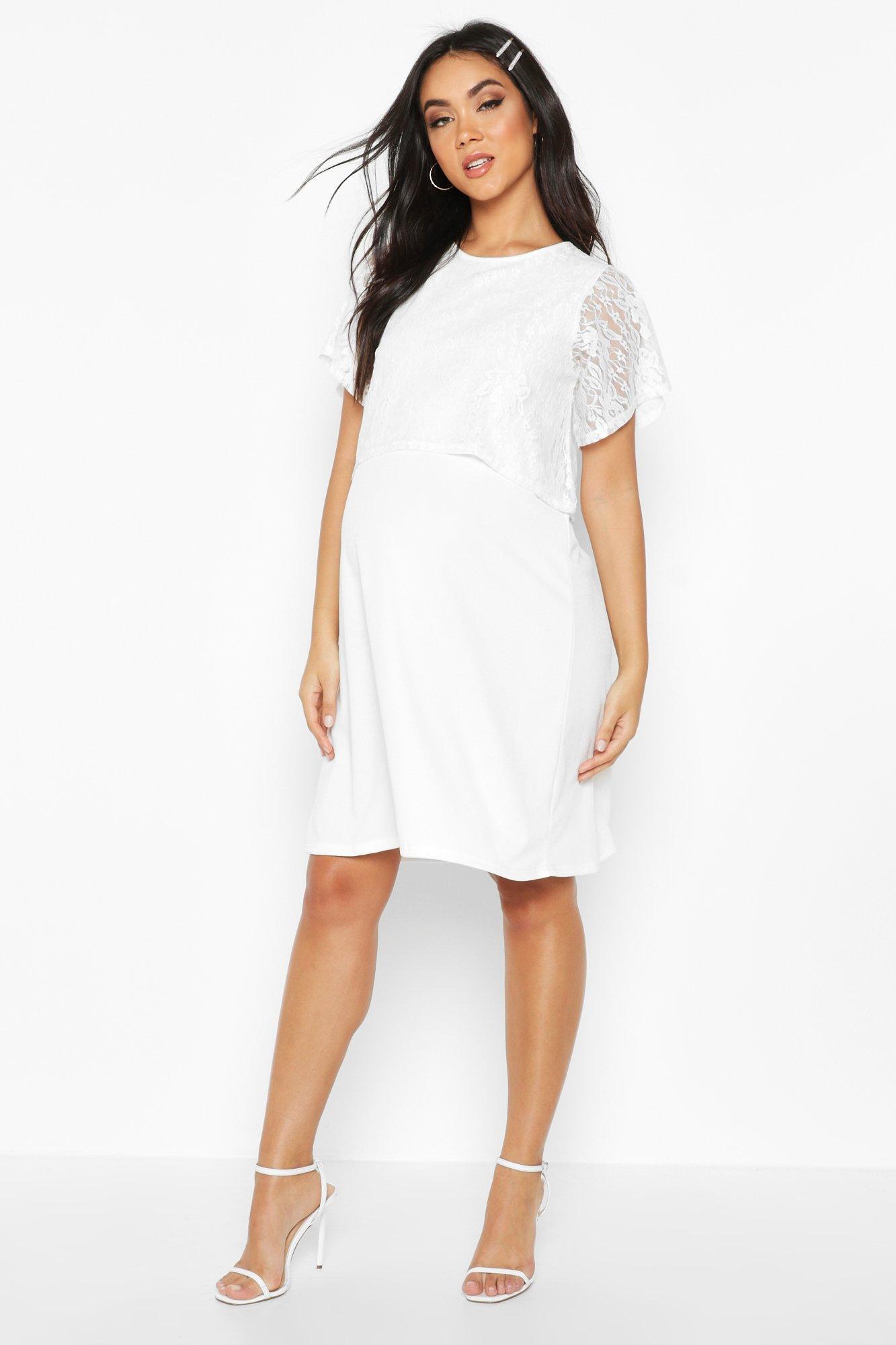 Womens Maternity Double Layer Lace Shift Dress - white - 4 - Maternity Double Layer Lace Shift Dress. Color: white