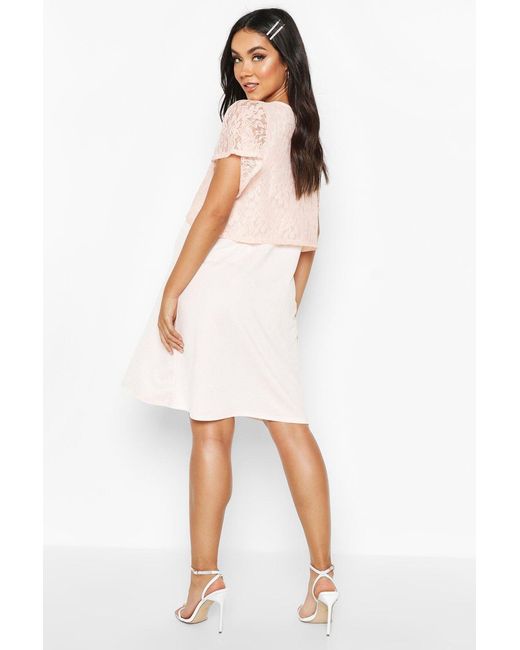 Womens Maternity Double Layer Lace Shift Dress - White - 4