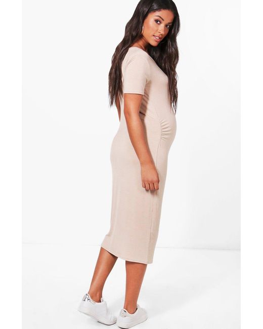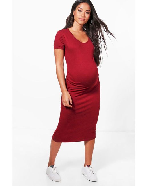 Womens Maternity Short Sleeve Midi Dress - red - 4 - Be seriously on trend this season with your hem line and add a midi dress to your closet. The midi dress offers cool, transitional dressing with serious layer ability. Whether you go for a floral wrap design teamed with Sneakers or a bodycon fit with killer heels, go midi to add that extra edge to any outfit. Color: red