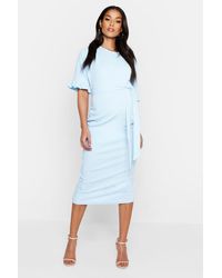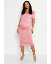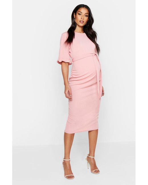 Womens Maternity Ruffle Midi Bodycon Dress - pink - 4 - Maternity Ruffle Midi Bodycon Dress.