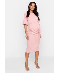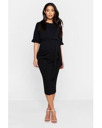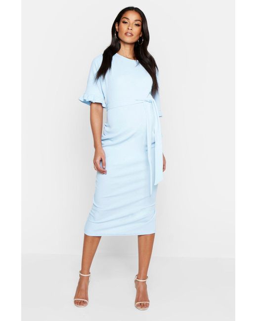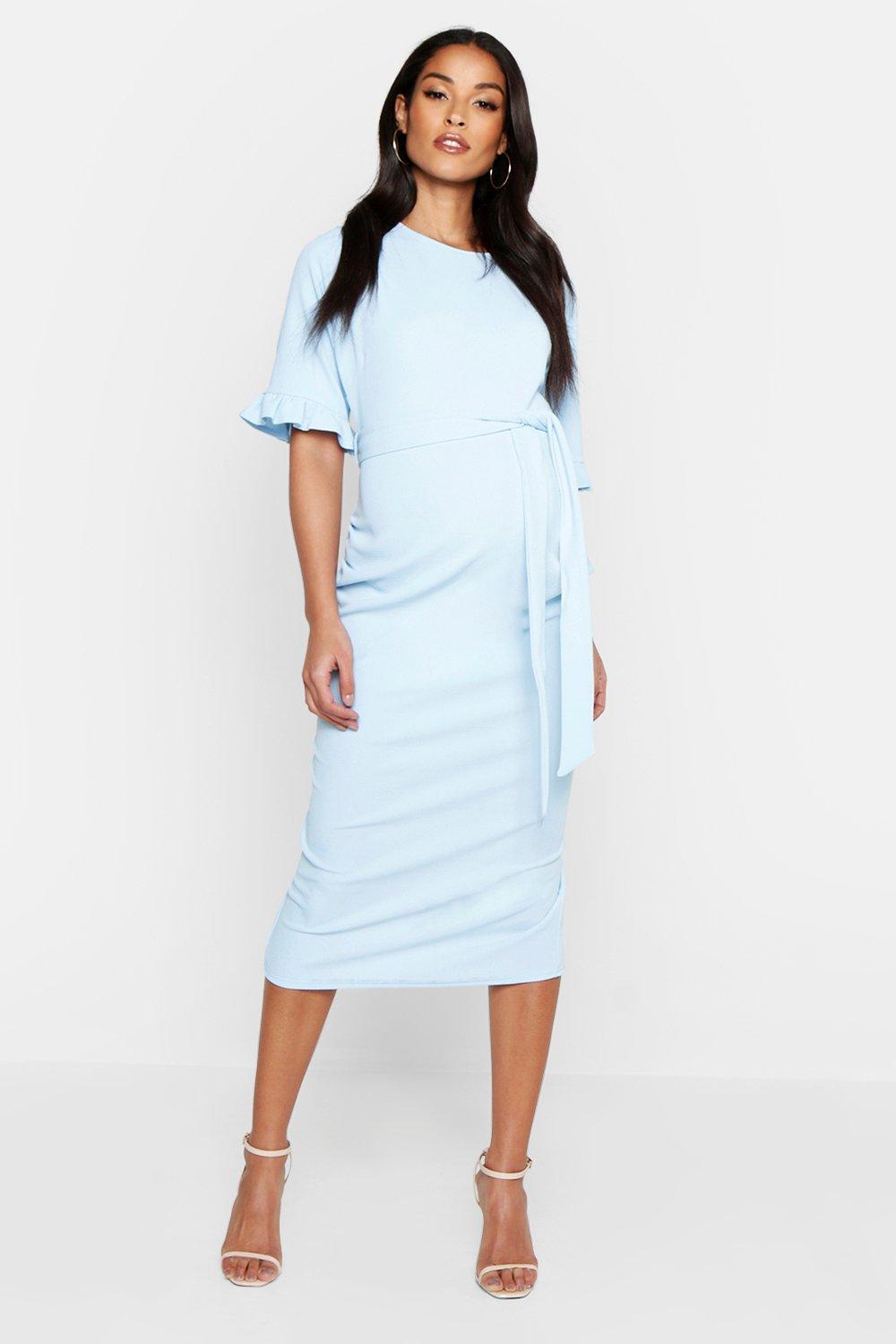 Womens Maternity Ruffle Midi Bodycon Dress - blue - 4 - Maternity Ruffle Midi Bodycon Dress.