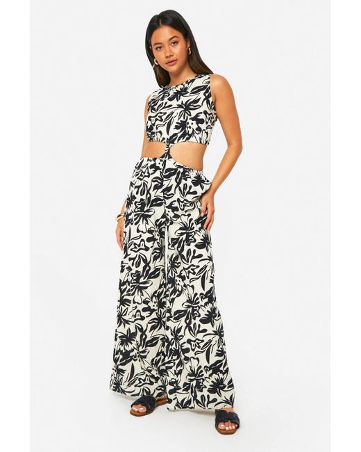 Women's White Mono Print Knot Front Cut Out Detail Woven Jumpsuit