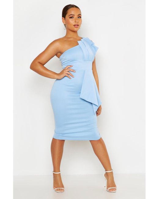 Womens One Shoulder Pleated Detail Midi Dress - blue - 4 - Dresses are the most-wanted closet item for day-to-night dressing. From cool-tone whites to block brights, we've got the everyday skater dresses and party-ready bodycon styles that are perfect for transitioning from day to play. Minis, midis and maxis are our motto, with classic jersey always genius and printed cami dresses the season's killer cut - add skyscraper heels for a serioulsy statement look. Dress up or down in style with boohoo. Color: blue