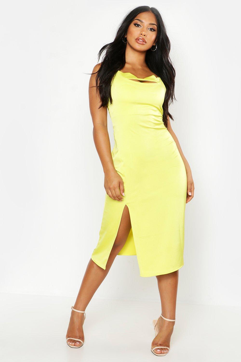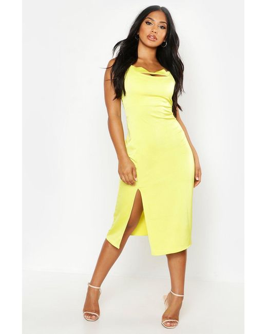 Womens Satin Cut Front Slip Dress - yellow - 8 - Dresses are the most-wanted closet item for day-to-night dressing. From cool-tone whites to block brights, we've got the everyday skater dresses and party-ready bodycon styles that are perfect for transitioning from day to play. Minis, midis and maxis are our motto, with classic jersey always genius and printed cami dresses the season's killer cut - add skyscraper heels for a serioulsy statement look. Dress up or down in style with boohoo. Color: yellow
