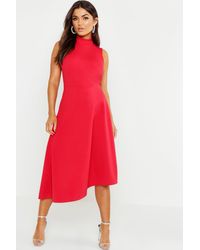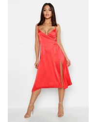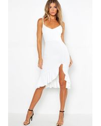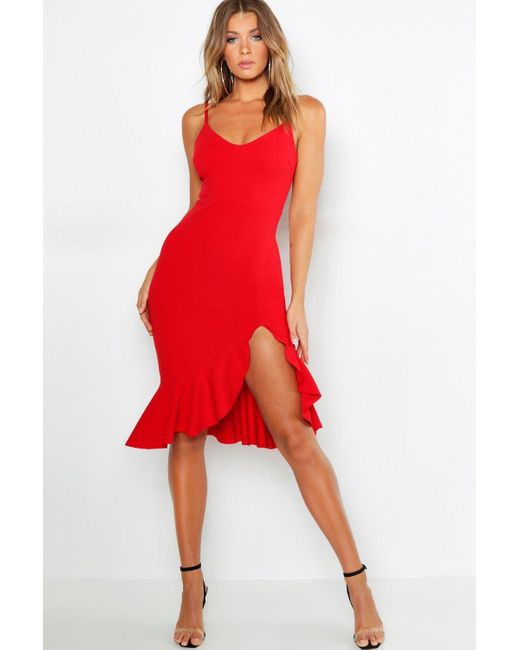 Womens Strappy Frill Hem Midi Dress - red - 4 - Dresses are the most-wanted closet item for day-to-night dressing. From cool-tone whites to block brights, we've got the everyday skater dresses and party-ready bodycon styles that are perfect for transitioning from day to play. Minis, midis and maxis are our motto, with classic jersey always genius and printed cami dresses the season's killer cut - add skyscraper heels for a serioulsy statement look. Dress up or down in style with boohoo. Color: red