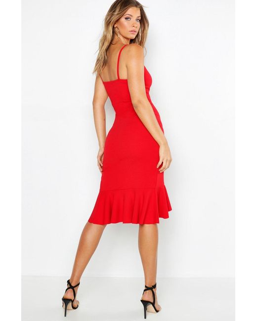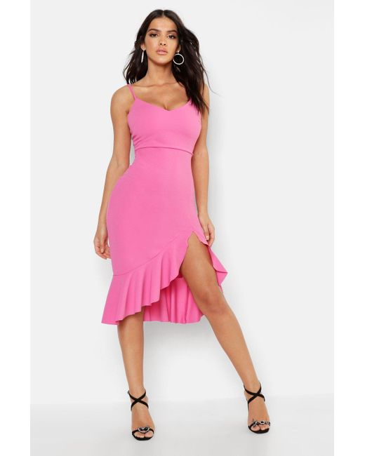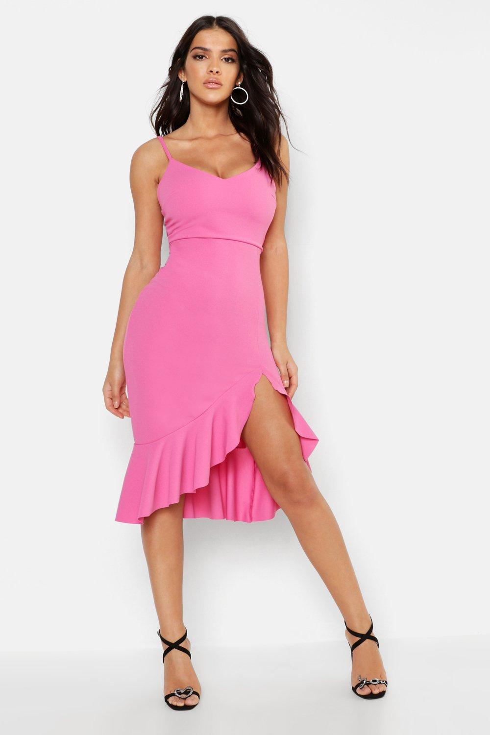 Womens Strappy Frill Hem Midi Dress - pink - 8 - Dresses are the most-wanted closet item for day-to-night dressing. From cool-tone whites to block brights, we've got the everyday skater dresses and party-ready bodycon styles that are perfect for transitioning from day to play. Minis, midis and maxis are our motto, with classic jersey always genius and printed cami dresses the season's killer cut - add skyscraper heels for a serioulsy statement look. Dress up or down in style with boohoo. Color: pink