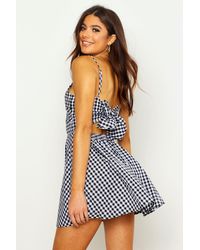Womens Strappy Gingham Bow Back Skater Dress - Pink - 4 - Dresses are the most-wanted closet item for day-to-night dressing. From cool-tone whites to block brights, we've got the everyday skater dresses and party-ready bodycon styles that are perfect for transitioning from day to play. Minis, midis and maxis are our motto, with classic jersey always genius and printed cami dresses the season's killer cut - add skyscraper heels for a serioulsy statement look. Dress up or down in style with boohoo. Color: pink