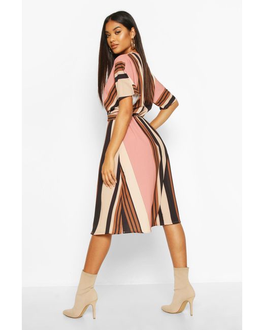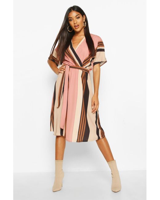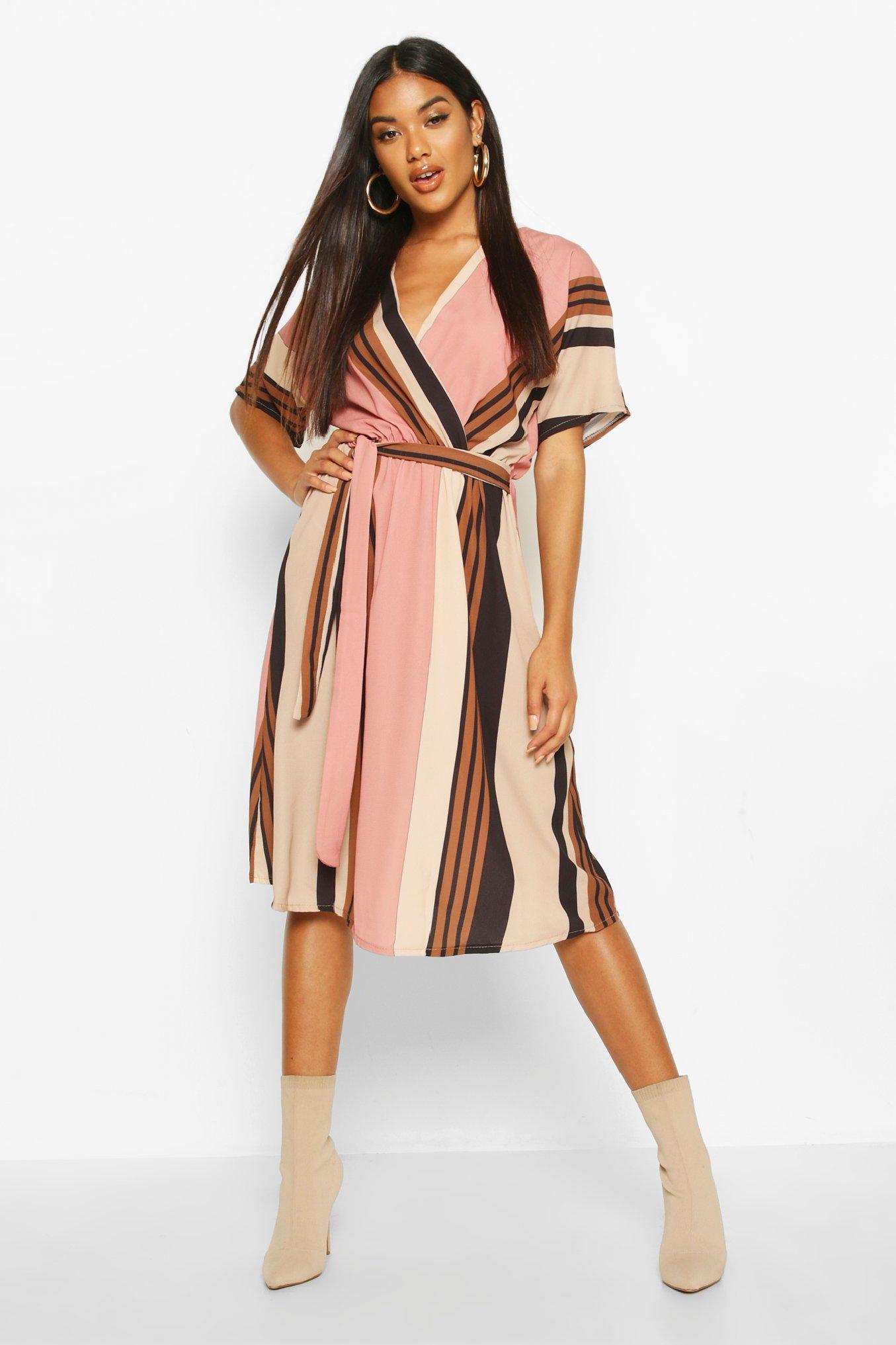 Womens Stripe Belted Wrap Midi Dress - Pink - 2 - Dresses are the most-wanted closet item for day-to-night dressing. From cool-tone whites to block brights, we've got the everyday skater dresses and party-ready bodycon styles that are perfect for transitioning from day to play. Minis, midis and maxis are our motto, with classic jersey always genius and printed cami dresses the season's killer cut - add skyscraper heels for a serioulsy statement look. Dress up or down in style with boohoo. Color: pink