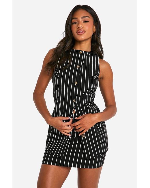 - Super Stretch Pinstripe Longerline Waistcoat & Micro Mini Skirt