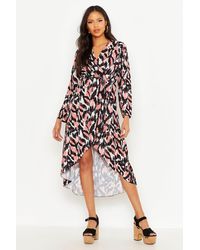 Womens Tall Floral Print Wrap Midi Dress - white - 2 - Tall Floral Print Wrap Midi Dress. Color: white