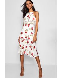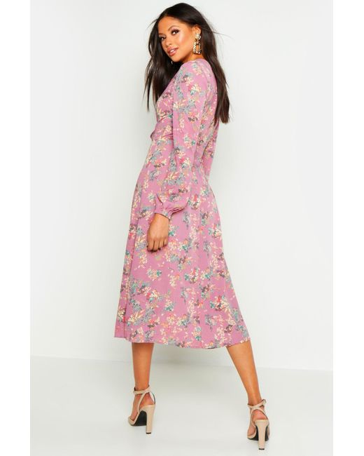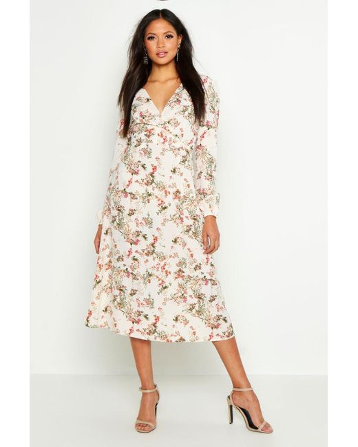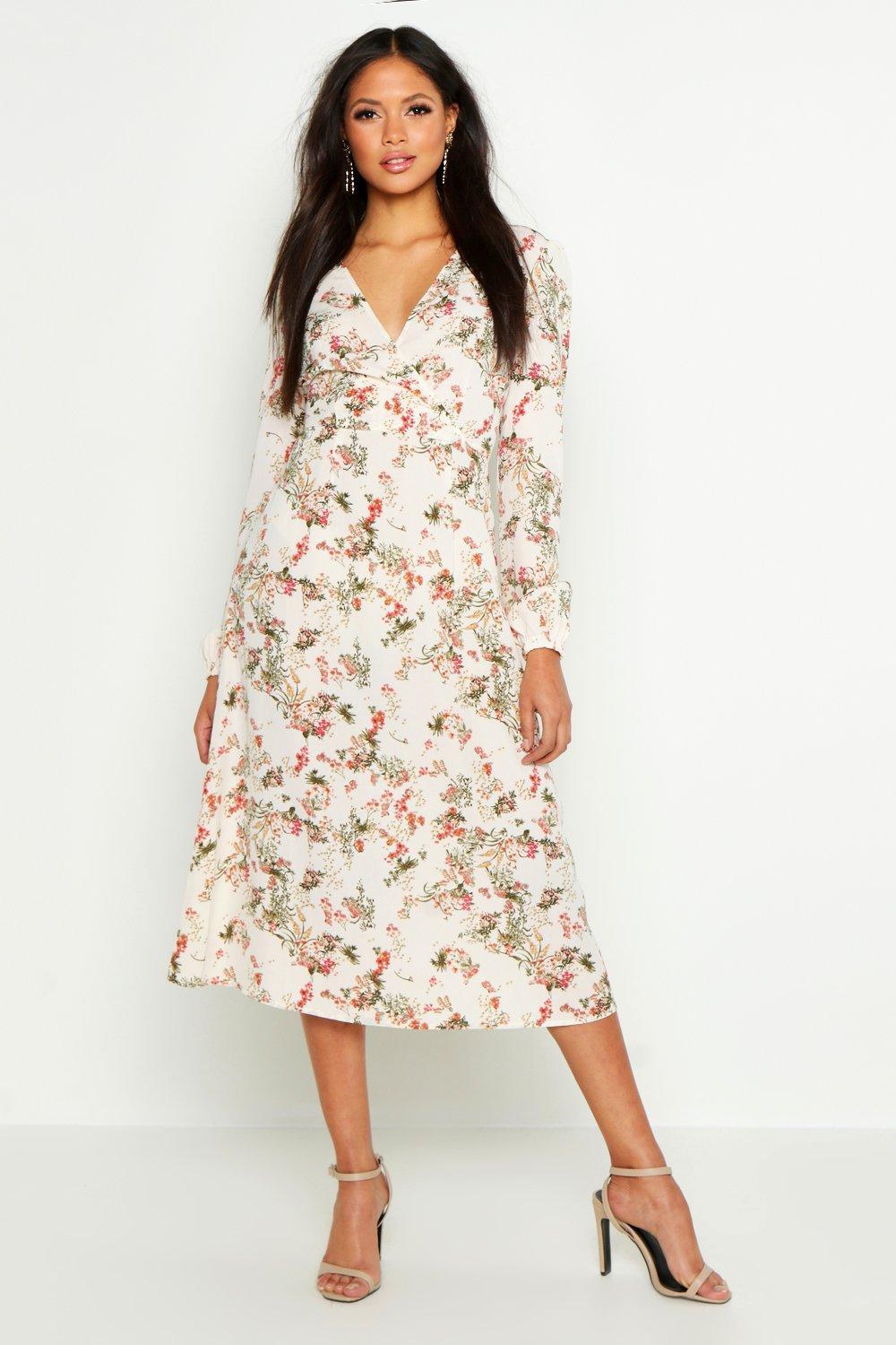 Womens Tall Floral Print Wrap Midi Dress - White - 2