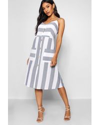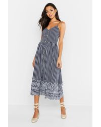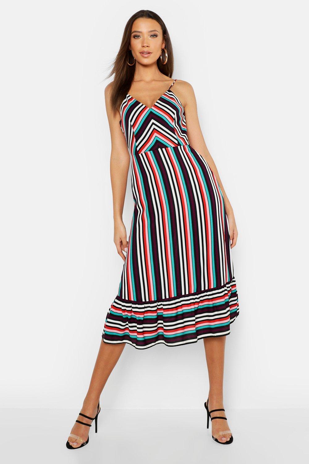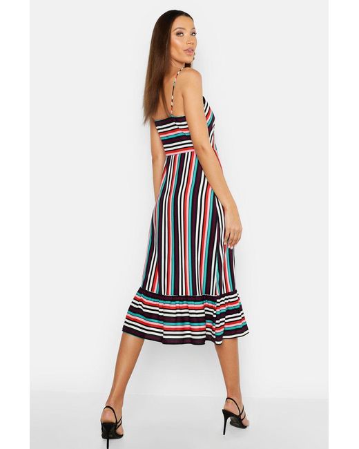 Womens Tall Stripe Ruffle Hem Strappy Midi Dress - navy - 2 - Tall Stripe Ruffle Hem Strappy Midi Dress. Color: blue