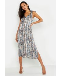 Blue Womens Tall Stripe Ruffle Hem Strappy Midi Dress - Navy - 2