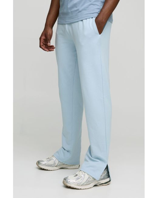 Men's Blue 260Gsm Loopback Basic Regular Fit Split Hem Sweatpants