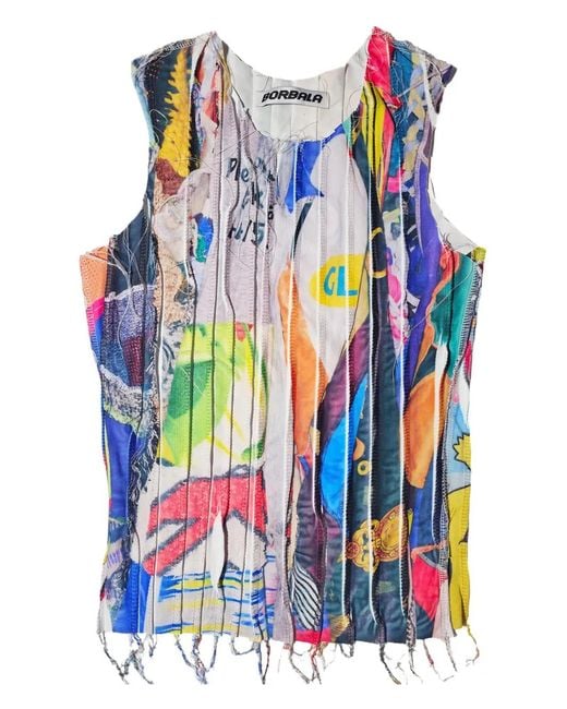 White and multicolor sleeveless fringed hem Size: S/M. Gender: Female. Material:Recycled Polyester/Elastane. Color: blue