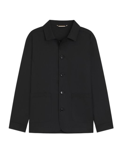 Men's Black Buttoned Patch-Pocket Jacket