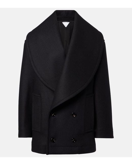Oversized Collar Double-Breasted Wool-Blend Coat - Black