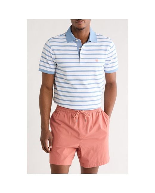 This short‑sleeve polo is made from textured cotton pique and finished with allover stripes for effortless style. 27" length (size Medium) Button half placket Spread collar Short sleeves 100% cotton Machine wash, tumble dry Imported Color: blue