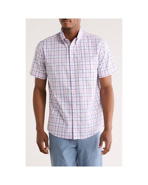 Men's Purple Sport Fit Plaid Short Sleeve Button-Down Shirt