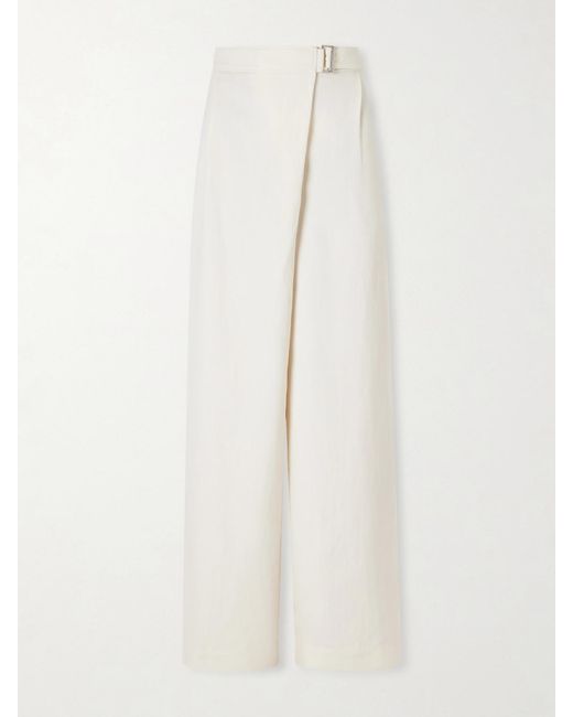 Women's White Belted Pleated Twill Wide-Leg Pants