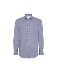 Brunello Cucinelli Men's Blue Button Down Collar Polo Shirt