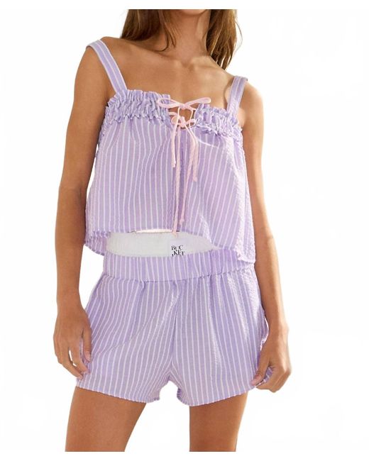 Women's Purple Seersucker Tie Front Tank