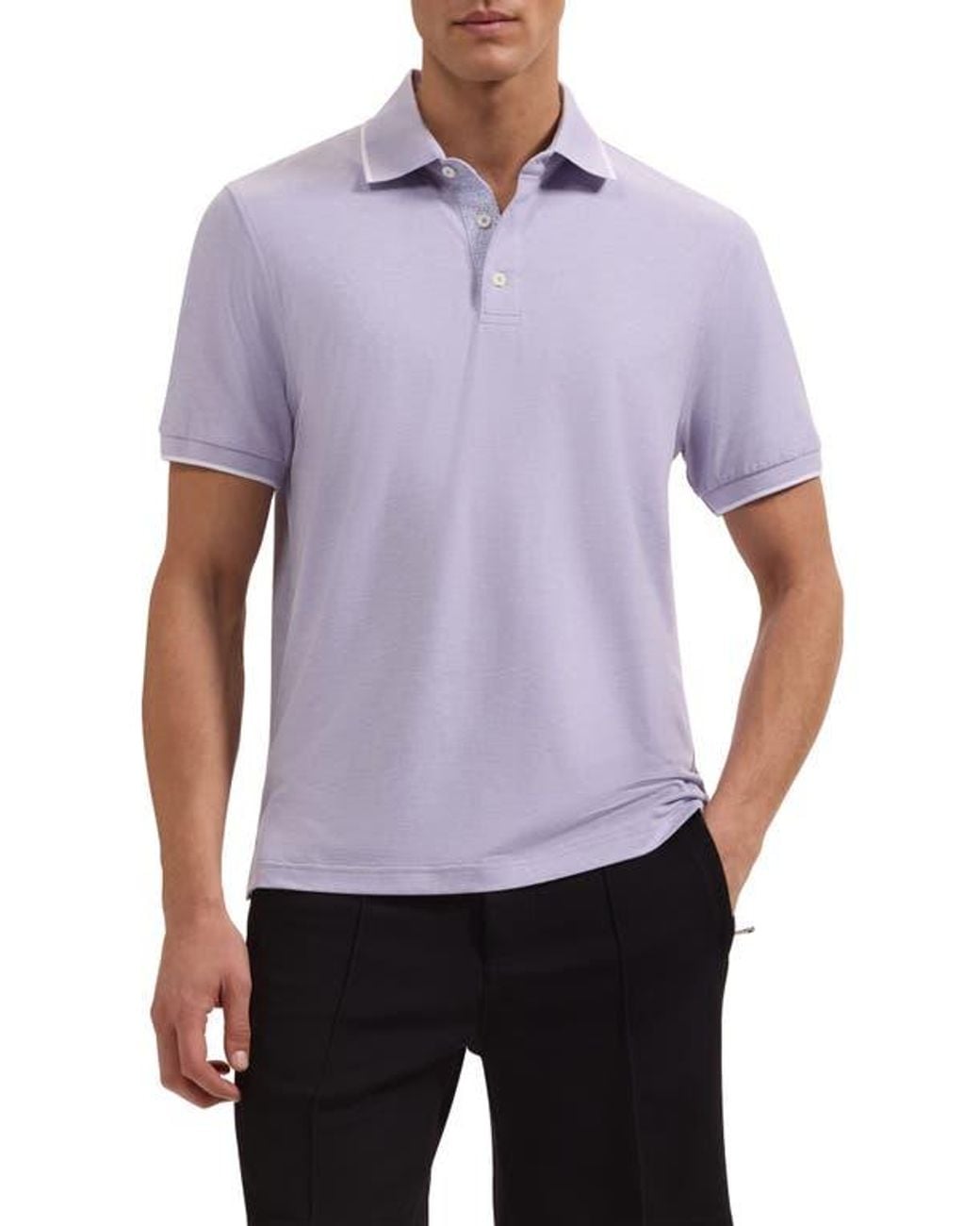 Designed with sharp tipped trim, this polo is cut from a high-performance stretch fabric that keeps you dry when the temps rise and shades you from the sun for all-day comfort. Color: purple