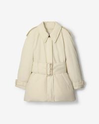 Go to BaltiniThe Berryhill Belted Padded Car Coat by Burberry offers a refined reinterpretation of the classic waterproof outerwear piece. Filled with down and feathers, it provides warmth and comfort while maintaining a sense of