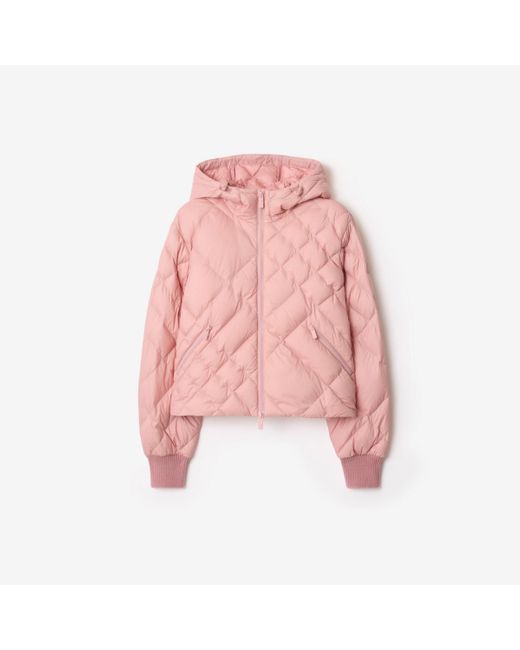 Women's Pink Check-Stitch Nylon Delley Puffer Jacket
