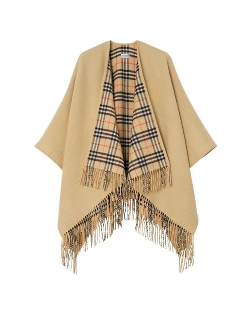 Women's Natural Reversible Check Wool Cape