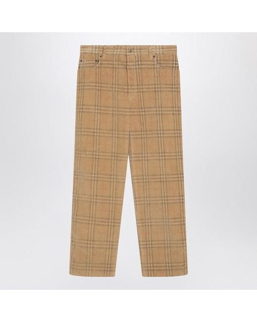 - Sand-Coloured Check Corduroy Trousers