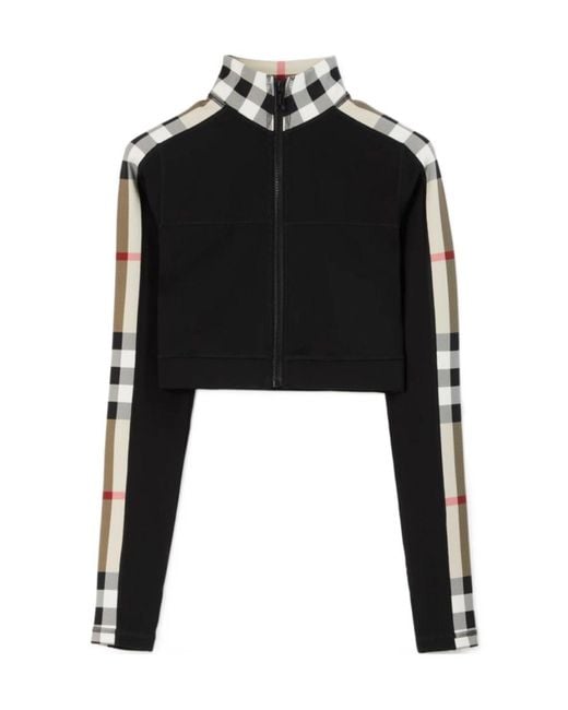 Women's Black Stretch-Jersey Check Zip-Up Crop Top