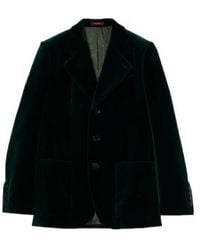 Go to BurberryElegant tailored jacket in soft stretch-velvet. Single-button closure for a clean finish. Check undercollar. Color: blue