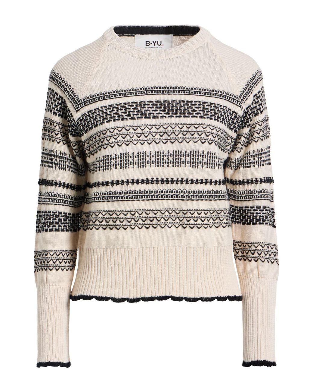 Intarsia-knit, lightweight knit, no appliqués, two-tone, crewneck, long sleeves, machine wash or dry clean, do not bleach, do not tumble dry , Color: Beige , Size: M