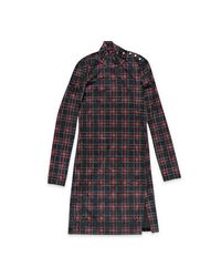 Go to FARFETCHDark green button fastening at the shoulder plaid check pattern high neck long sleeves side slit straight hem Size: XS. Gender: Female. Material:Fabric. Color: black