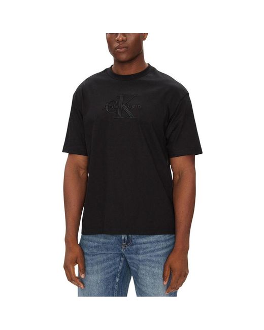The Calvin Klein Jeans SS HERO MONOLOGO EMB LV04RB295G men's t-shirt is the perfect choice for those seeking a casual yet refined look. Made from a blend of 100% cotton, 37% polyester, 20% recycled cotton, and elastane, it offers a comfortable fit and a soft feel on the skin. The short-sleeved design features a subtle tone-on-tone Calvin Klein Jeans embroidered logo on the chest, adding a distinctive yet understated touch. With its regular fit and lightweight fabric, this t-shirt is ideal for everyday wear during warmer seasons or to complete urban, contemporary outfits. A versatile piece, suitable for leisure time and informal occasions. Season: FW25. Color: black