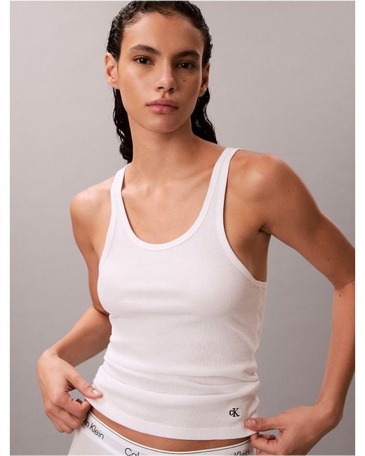 Women's White Calvin Klein Cotton Contour Rib Tank