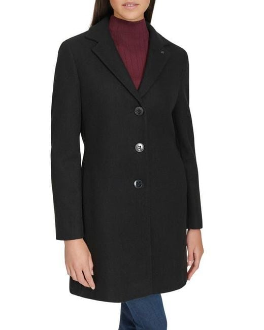Notched lapels frame a cozy faux-wool coat cut for a polished, work-to-weekend look with a longline silhouette that's gently tucked in at the waist. Front button closure Notched lapels Front welt pockets Lined 100% polyester Dry clean Imported Color: black