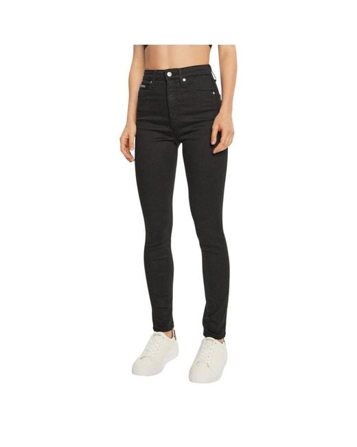 Discover the Calvin Klein Jeans HIGH RISE SKINNY J20J224013 skinny and super-skinny jeans for women, an essential piece for your wardrobe. Made with high-quality materials, these jeans consist of 78% cotton, 18% polyester, and 4% elastane/lycra, ensuring a comfortable fit and a sleek silhouette. The high-rise design accentuates the female figure, while the skinny cut offers a modern and fashionable look. Perfect for any occasion, these jeans can be paired with a variety of tops and shoes, making them a versatile option for your everyday style.