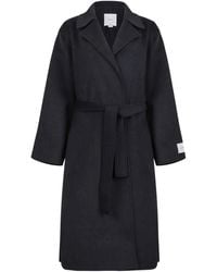 Go to FARFETCHLight-blue lapel collar belted waist long sleeves straight hem wool-blend Size: XS. Gender: Female. Material:Polyester/Wool. Color: blue