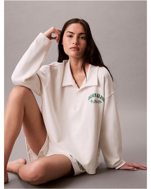 Women's Natural Logo Cotton Jersey Polo Sweatshirt