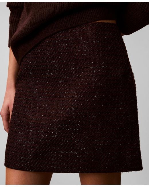 Featuring a textured tweed fabric, this Calvin Klein skirt offers a slim, high-waisted mini silhouette. The hidden back zipper and fully lined interior ensure a smooth and polished look. Shell & lining: 100% polyester; clasp closure & invisible zipper: 100% alloy. Color: black