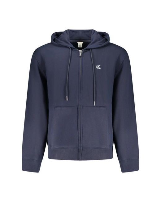 Calvin Klein Long-sleeved Hooded Sweatshirt features a brushed, zip-through design with two central pockets and an embroidered logo — a comfortable, versatile layer for everyday wear. Key attributes: Blue | Blu | Cotton | Soft brushed finish for added warmth | Zip closure | Two central pockets | Hood | Long sleeves | Embroidered logo | Brushed finish | Dimensions & fit: Relaxed fit | Composition & care: 100% cotton | Machine wash Color: blue