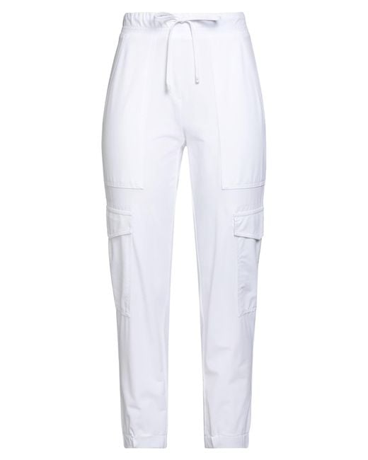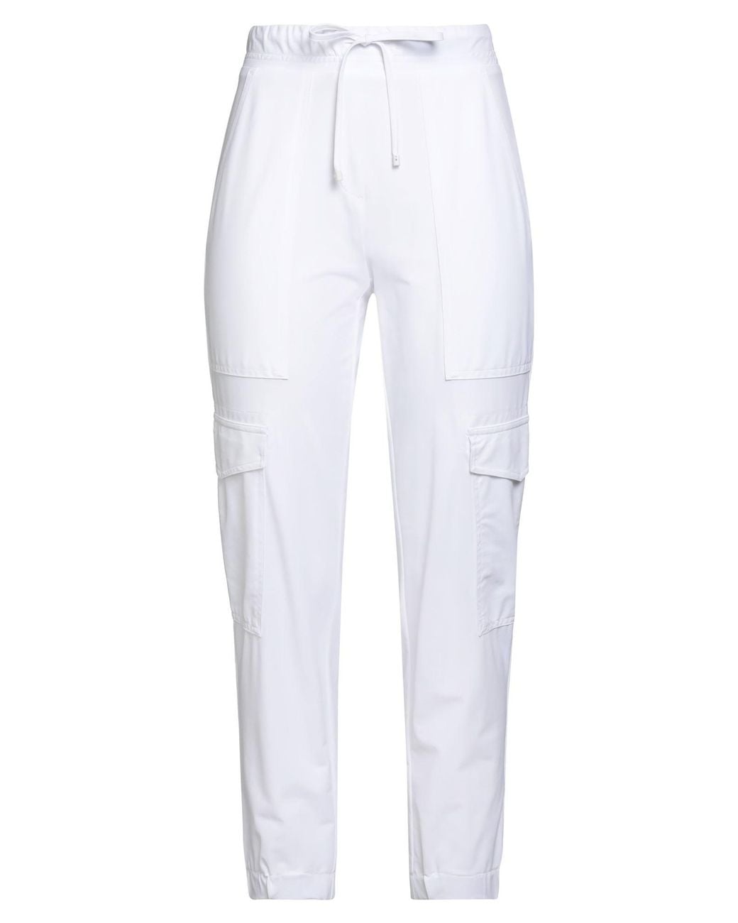 Cargo pants, synthetic jersey, stretchy fabric, solid color, no appliqués, high waisted, elasticized waist, relaxed fit, drawstring fastening, elasticated hem, multipockets, machine wash or dry clean, do not bleach, do not tumble dry , Color: White , Size: 4