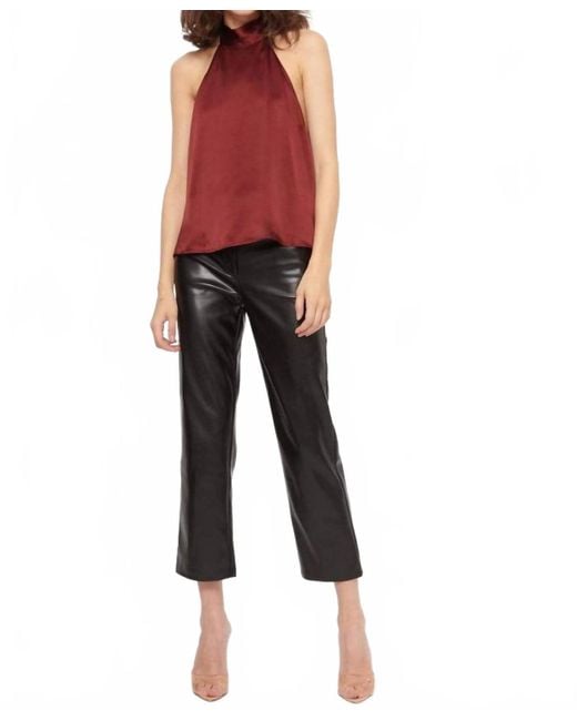 Pair this with your favorite jeans and slides for your next girls night out.Elevate your evening attire with the Janice Halter-neck Top by Cami NYC, exuding a sense of quiet luxury in a rich currant hue. This sleeveless blouse boasts a halter neckline and a stylish back tie closure crafted from 100% silk, with a lining of 100% Ecovero for added comfort. Made from sheen charmeuse fabric, it's perfect for spring soirées and New Year's Eve celebrations. For optimal care, dry clean only. Color: red